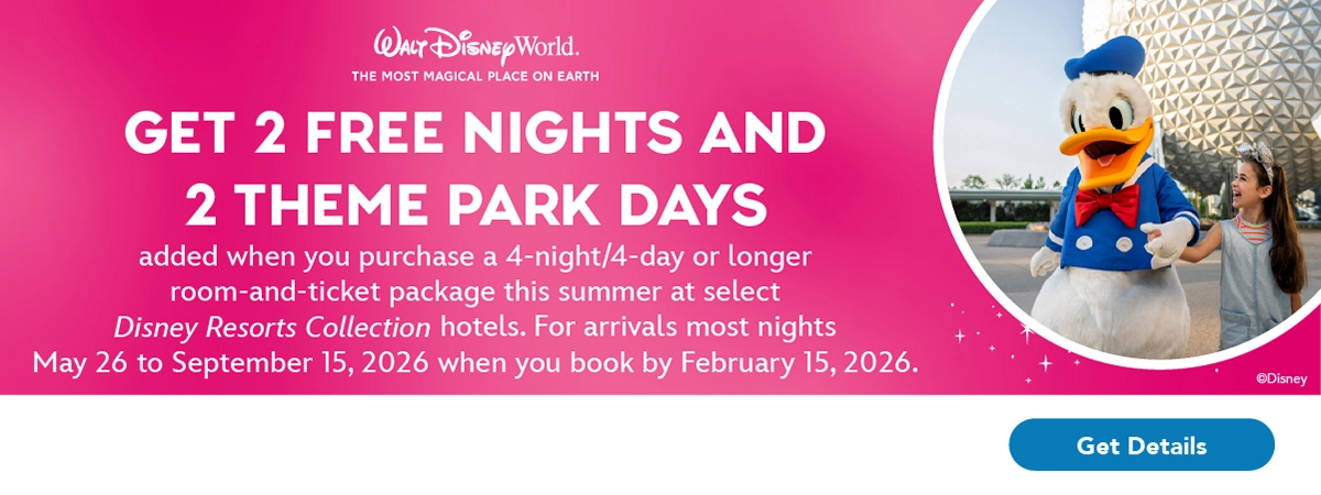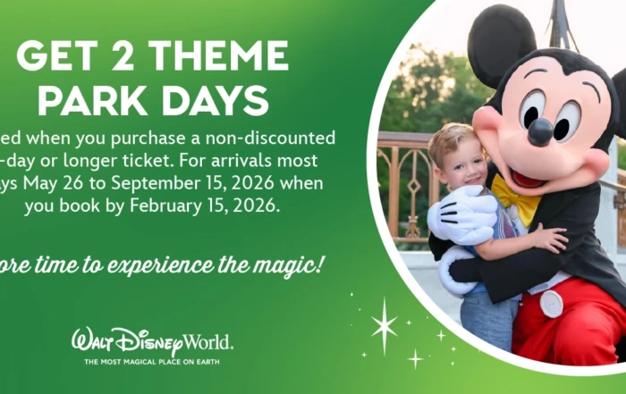 Get 2 Free Nights and Theme Park Days with Select Summer 2026 Walt Disney World® Packages